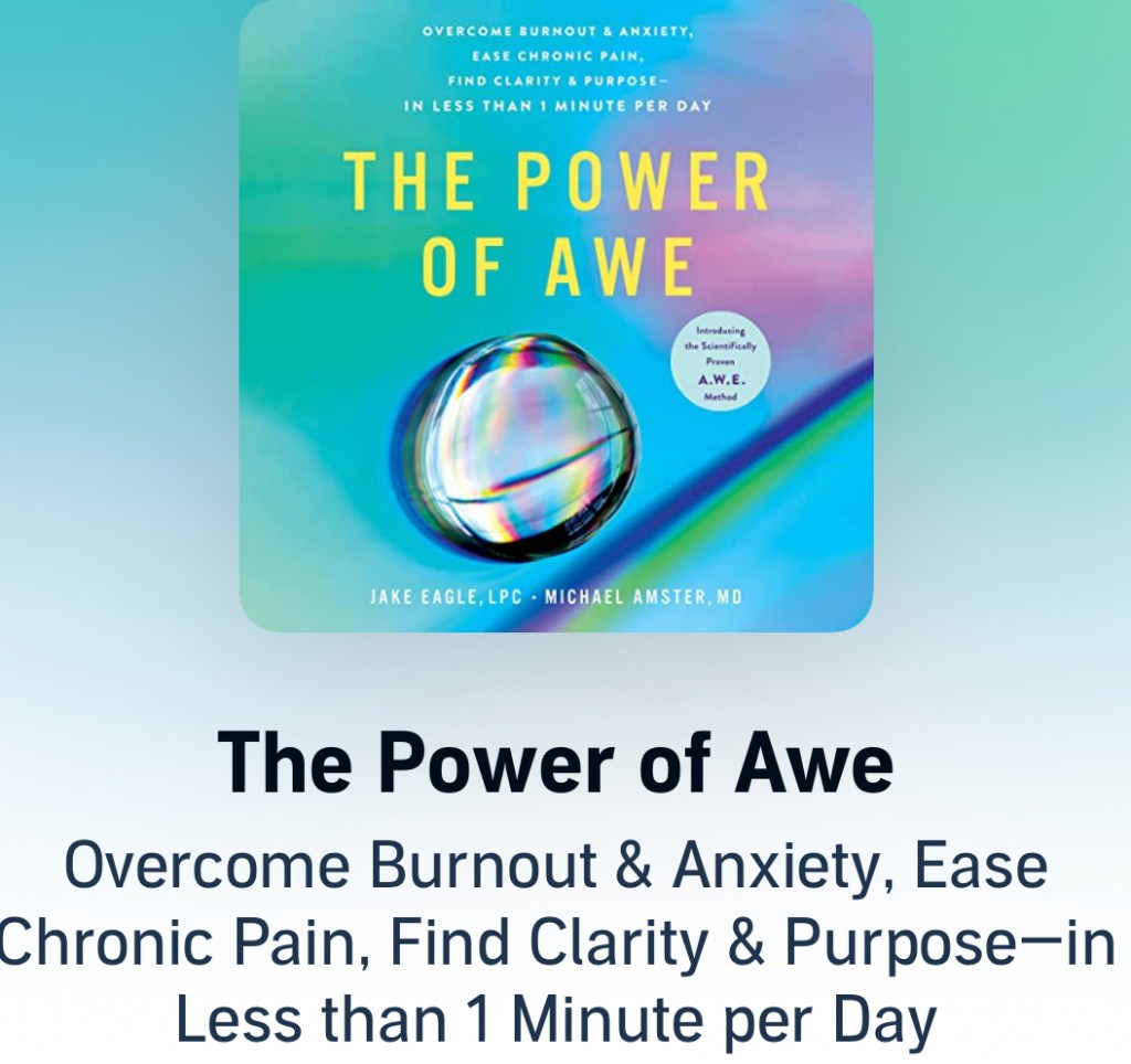 I started working on a daily practice of meditation about 10 years ago. It’s still a challenge. As anyone who has tried meditating knows, your mind can be like a restless, caged animal, always pacing around. In moments of physical stillness, your brain is likely to be continuing to aimlessly work. You find yourself scanning for a purpose, making plans, considering threats or possible rewards, pointlessly reviewing or exploring ideas. Enter “The Power of Awe,” a groundbreaking book by Jake Eagle and Dr. Michael Amster.